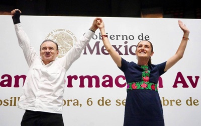 “Hoy México vive estabilidad política, mantiene estabilidad económica y ejerce plenamente las libertades. Por todo ello, asumimos, presidenta, como nuestro deber seguir trabajando con usted en esta hazaña política y social en la que ha convertido su gestión de gobierno, cuidando su legado de humanismo y justicia social, por todo ello Sonora está con usted, Sonora está con la Cuarta Transformación”, aseguró el gobernador Durazo.