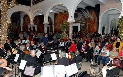 Teniendo como escenario el patio central de Palacio de Gobierno, Isssteson, con el respaldo del Gobierno de Alfonso Durazo Montaño, presentó el Concierto Coral Navideño, evento que desde 1994 reúne a talentosos músicos y cantantes que entonan villancicos y melodías que evocan la alegría de la temporada decembrina.