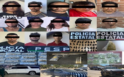 En Cajeme, la PESP incautó un arma de fuego con cargador y nueve cartuchos a dos personas en operativos por Lomas de Bácum, mientras que en Leandro Valle detuvieron a dos hombres por posesión de 10 envoltorios con narcótico, con coordinación de Policía Municipal de Caborca se logró detener a José “N” y Leonel “N” con 35 dosis, además, en Santa Cecilia, con la Secretaría de la Defensa Nacional (Defensa) y la Agencia Ministerial de Investigación Criminal (AMIC), aseguraron alrededor de 18 máquinas tragamonedas.