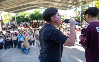 El evento se desarrolló en las instalaciones del Centro de Bachillerato Tecnológico Industrial y de Servicios (CBTIS) No. 132, contando con la entusiasta participación de jóvenes talentos locales apasionados por el género del rap.